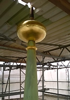 Die Untersuchungen der Bausubstanz haben gezeigt, dass dem Auseinanderstreben des Turmschaftes noch mit keiner wirksamen Konstruktion entgegen gewirkt wurde.