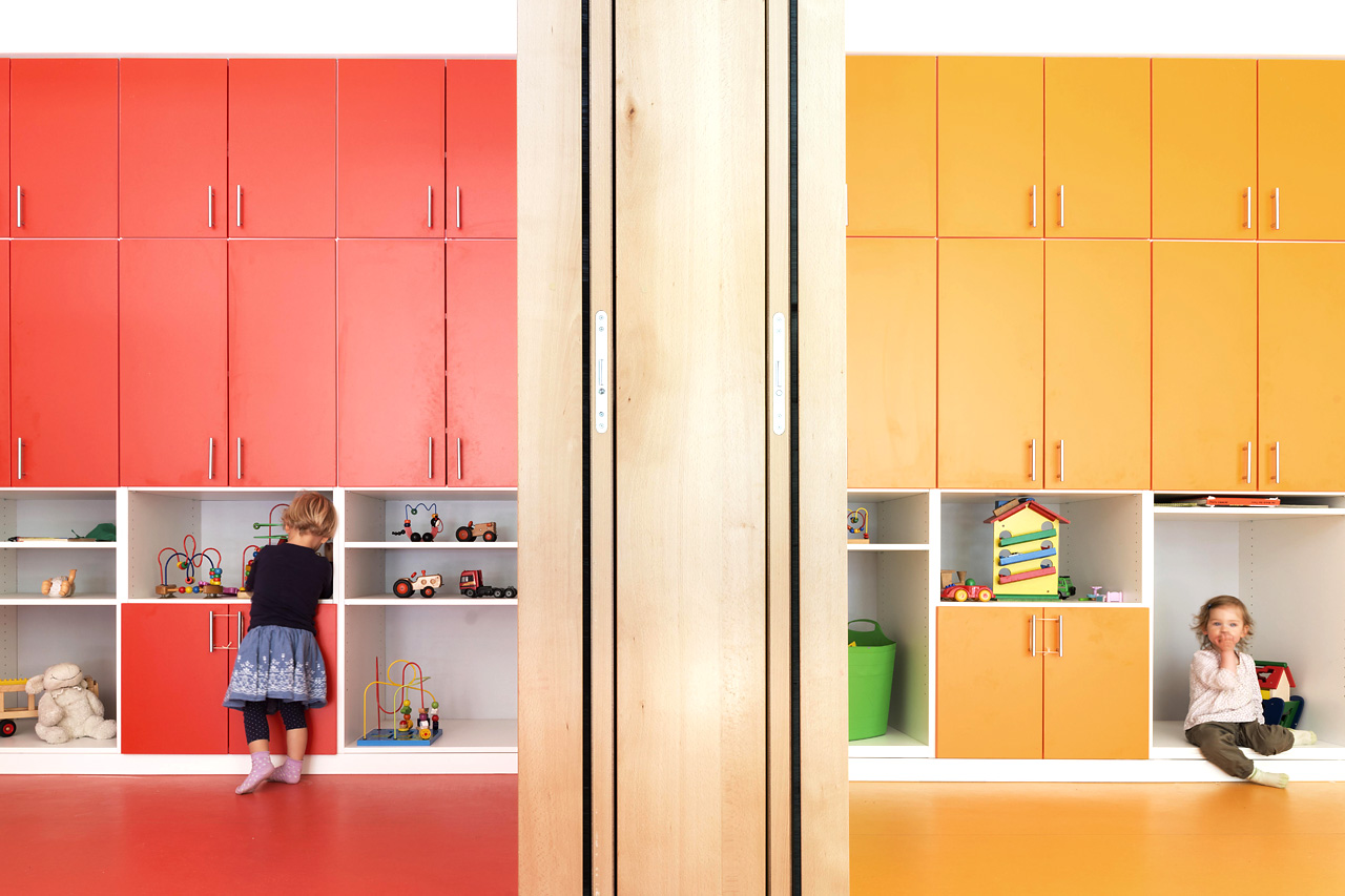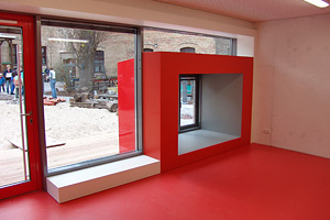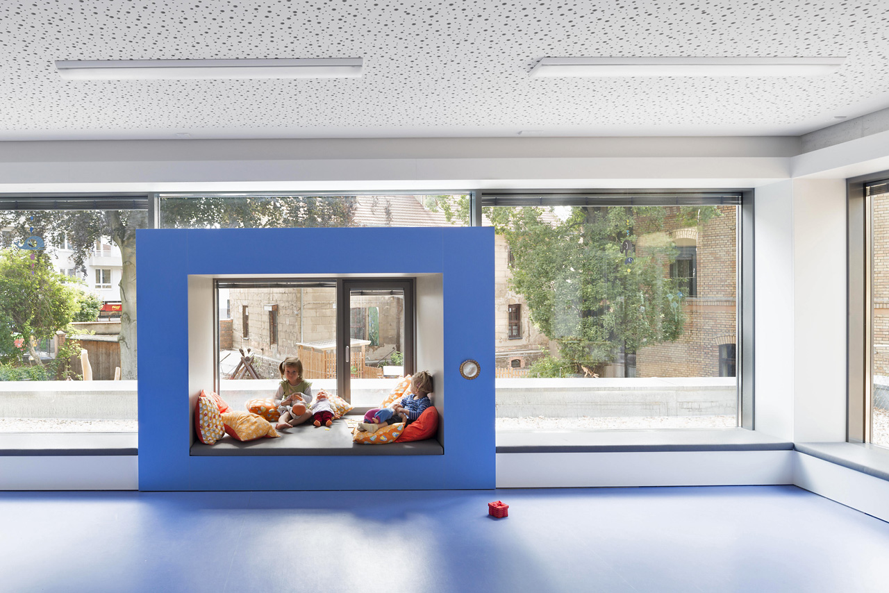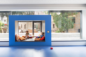 Darüber hinaus werden punktuell dunklere höhlenartige Nischen oder höhlenartige Fenster als Rückzugsmöglichkeit für die Kinder in den Gruppenräumen vorgesehen.